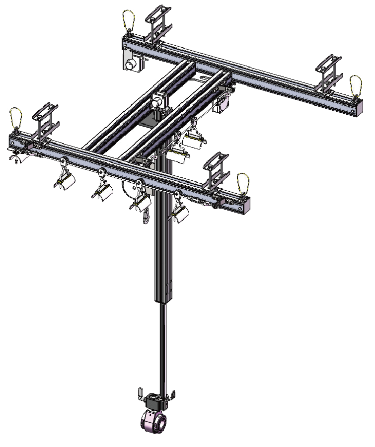 桁架式抗扭力臂采用铝合金轨道系统、轨道小车、扭矩管组件、平衡器组件、定位组件等,此款力臂具有以下特点: