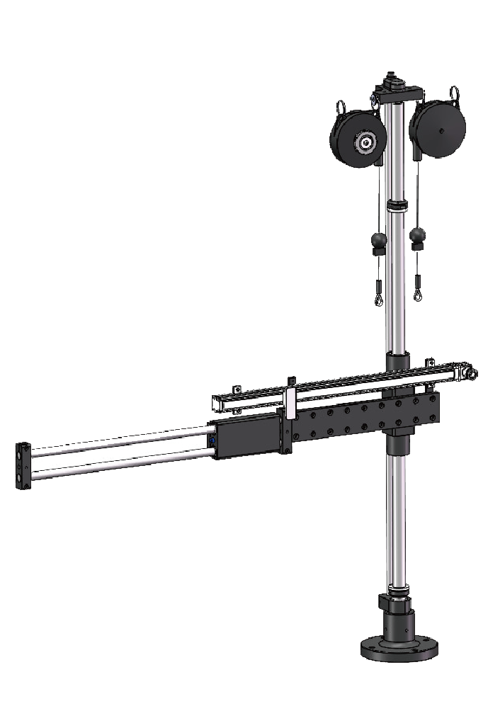 直推型抗扭力臂配置了弹簧平衡器,弹簧平衡器可吸收工具和力臂的重量,从而降低操作员承受的疲劳强度,使反作用力降低,所有的反力被力臂抵消。此款力臂具有以下特点: